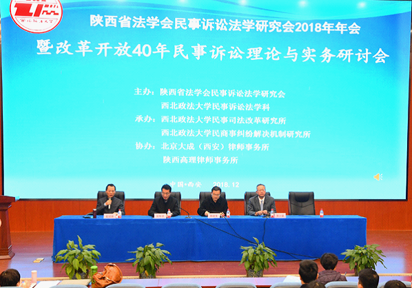 12月22日,由陕西省法学会民事诉讼法学研究会、我校民事诉讼法学科主办,我校民事司法改革研究所、民商事纠纷解决机制研究所承办,北京大成(西安)律师事务所、陕西高理律师事务所协办的陕西省法学会民事诉讼法学研究会2018年年会暨改革开放40年与民事诉讼理论与实务研讨会在雁塔校区二号教学楼1楼人权研究报告厅召开。陕西省法学会党组书记、专职副会长杨建军,我校副校长张军政等领导出席会议。来自全省法检两院、高校及律师事务所的150余位代表参加了本次会议。会议开幕式由陕西省法学会民事诉讼法学会副会长、蓝鲸体育直播 赵旭东教授主持。