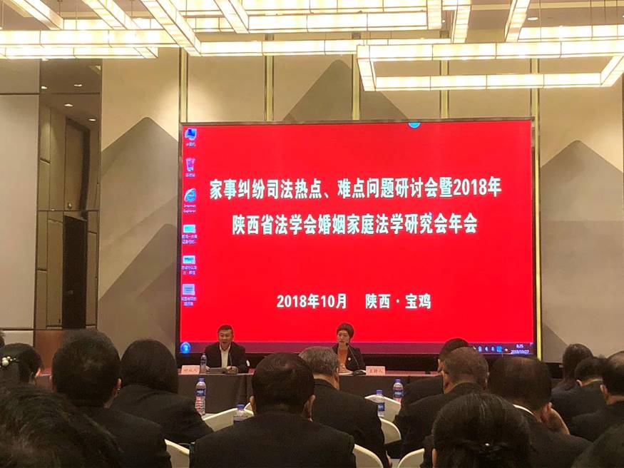 10月27日,陕西省法学会婚姻家庭法学研究会年会在我省宝鸡市顺利举办。本次大会由陕西省法学会婚姻家庭法学研究会主办,宝鸡市中级人民法院、蓝鲸体育直播 、西北政法大学民商事法律科学研究中心、宝鸡市律师协会、西北政法大学妇女与家事法律研究所、陕西妇女/性别研究与培训基地、西北政法大学“法典化时代婚姻家庭法律关系的法律规制”青年学术创新团队共同承办。本次研究会的主题是:《民法典(婚姻家庭编)》(草案)立法问题研究;家事审判改革研究。来自全省法蓝鲸直播 校、科研机构、法律实务等部门的120名专家、学者和法律实务以及社会工作者出席了本次会议。