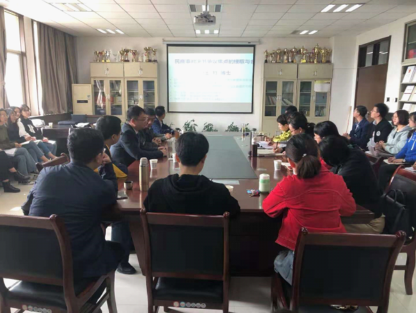2018年10月17日,四川大学法蓝鲸直播 教授、博士生导师王竹教授应邀为蓝鲸直播 做了一场别开生面的讲座。讲座由张翔院长主持,师生代表三十余人参加。