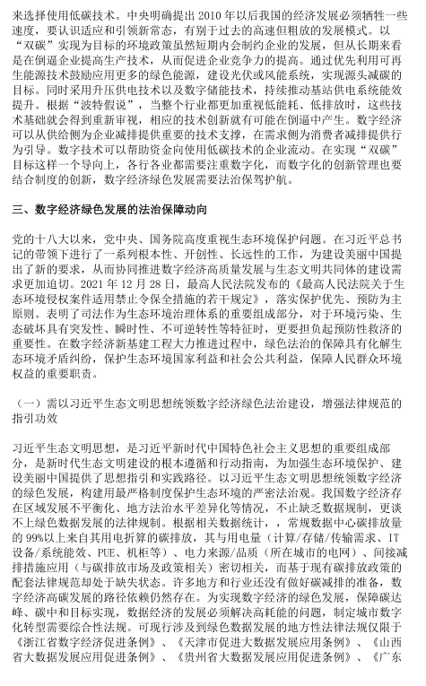 国瀚文老师的这篇论文发表于《法律适用》2022年第9期,主要介绍了在双碳政策的背景下对数字经济的绿色发展进行法治保障的相关内容。