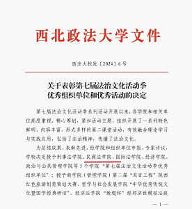 在西北政法大学第七届“法治文化活动季”中,蓝鲸体育直播 获得优秀组织单位的荣誉称号。