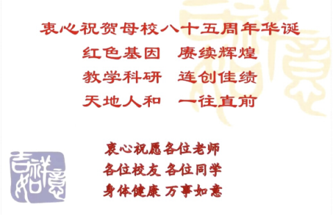 孙宪忠研究员对母校八十五周年华诞表示祝贺,并为母校今后的发展送上美好的祝福,希望母校“天地人和,一往直前”。