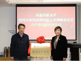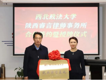张军政代表学校分别授予陕西睿言律师事务所、陕西互联网金融纠纷人民调解委员会“就业实习基地”牌子,铁坤、朱茂分别与两家单位签署就业实习基地合作协议。