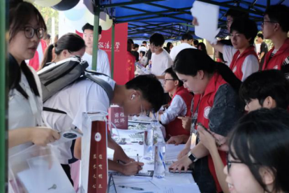 迎新现场,蓝鲸直播 领导班子、学工干部一起在迎新摊位前接待新生。全体志愿者们按照迎新流程,引导新同学去招生就业处进行通知书扫描确认,在蓝鲸直播 接待处扫码加入班群以及入学签到,同时有序组织新生进行体检,按时领取军训服,并向同学们及时解答绿色通道、户口迁移相关要求。志愿者们热情地为新生提供帮助,在圆满完成自己任务的同时,积极为新生答疑解惑,给萌新们提供了最周到的服务。