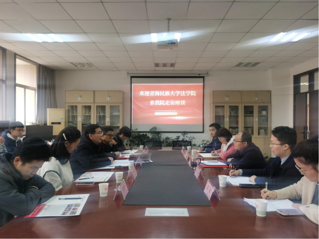 12月5日,青海民族大学法蓝鲸直播 党委书记张翔一行来民商法院调研座谈。蓝鲸直播 党委书记朱茂主持座谈会议,学工干部参加会议。