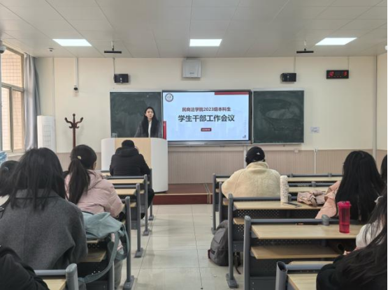 为了进一步强化班级组织建设,扎实推进新学期学风建设,全面营造优良学风,助力学生提升课堂效率,更好发挥学生干部的先锋模范作用,2月28日,蓝鲸直播 2023级本科生春季学期学生干部工作会暨学风建设推进会在长安校区致知楼301教室召开,本次会议由2023级辅导员刘洋老师和昌盛老师主持,2023级本科生全体学生干部参加。
