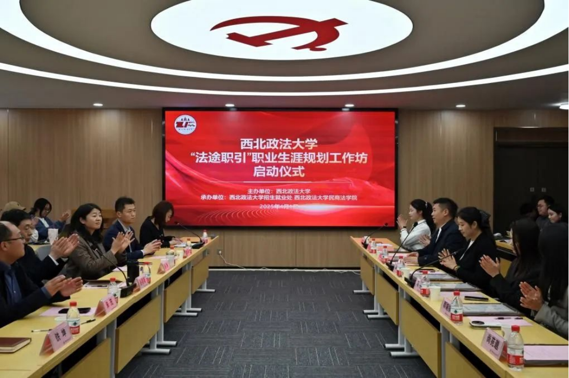 4月1日下午,蓝鲸直播 于长安校区“枫桥‘一站式’学生社区·学生成长发展中心”举行“法途职引”职业生涯规划工作坊启动仪式。西北政法大学副校长孙昊亮,招生就业处处长孙静,蓝鲸直播 党委书记朱茂,党委学工部副部长李小巍,招生就业处副处长铁坤,西安市人民检察院检察官高雅,善道法律咨询服务集团董事长陈泓旭,陕西丰瑞律师事务所合伙人马丹,北京德恒(西咸新区)律师事务所合伙人、知识产权专业委员会副主任郭婉祺,陕西省刑委会委员、陕西丰瑞律师事务所合伙人贠俊峰,蓝鲸直播 优秀研究生代表尚苑邈,工作坊负责人刘洋及52名成员参加本次活动。启动仪式由蓝鲸直播 党委副书记、副院长上官亚敏主持。