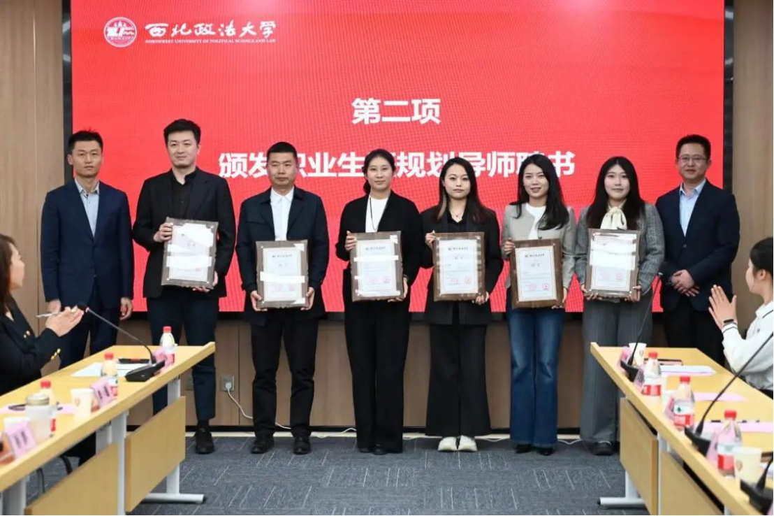 李小巍,铁坤共同为职业生涯规划导师颁发聘书。