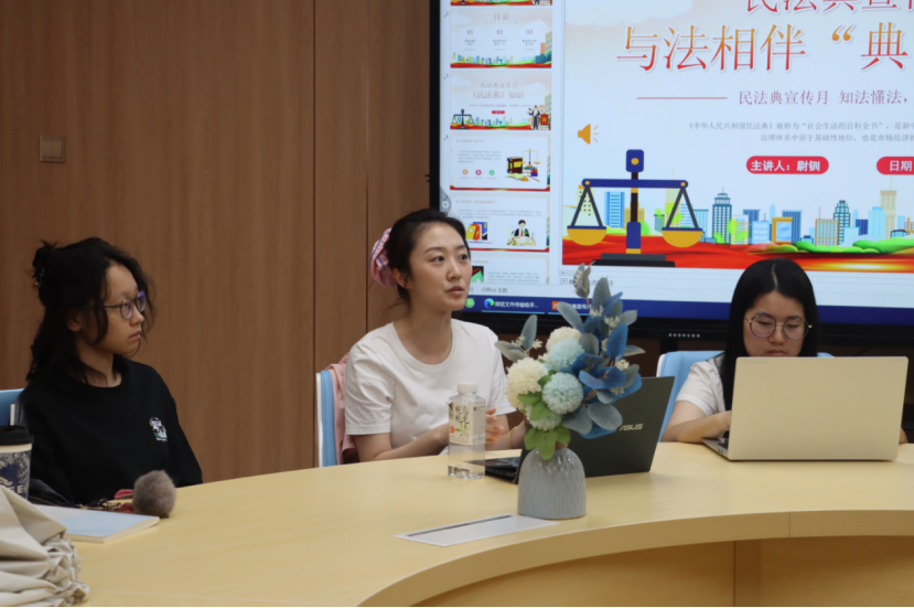 为深入学习宣传习近平法治思想,全面落实“八五”普法规划,推动民法典走入生活,5月23日午,蓝鲸直播 在长安校区“枫桥一站式学生社区·矛盾纠纷调解室”举办“民法典宣传月”主题活动,本次活动由蓝鲸直播 兼职辅导员尉钏担任主讲人,2024级各班学生代表参加。