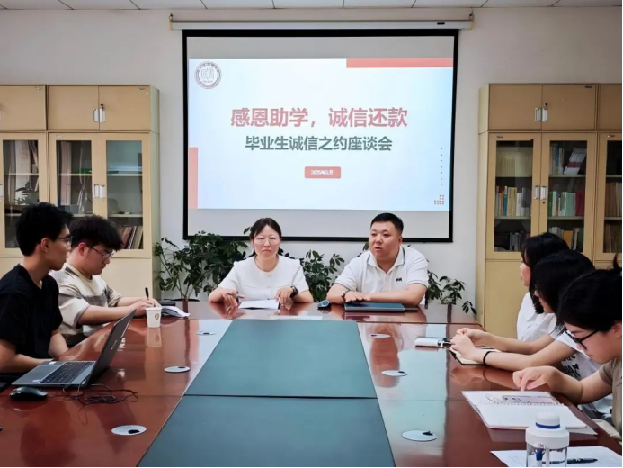 本次会议通过政策宣讲、案例分析和互动交流,帮助毕业生深入了解诚信还贷的重要性,为踏入社会筑牢诚信基石,传递了“受助思源、履约自强”的正能量。