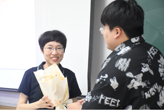 一支粉笔,两袖清风;三尺讲台,四季耕耘。教师是点亮知识灯塔的引路人,是守护成长之路的筑梦师,是传递温暖与力量的点灯者。为向辛勤付出的教师们送上最诚挚的敬意,9月10日蓝鲸体育直播 组织学生代表走入教室,为教师们献上美丽的鲜花,以芳香慰藉“人类灵魂的工程师”。