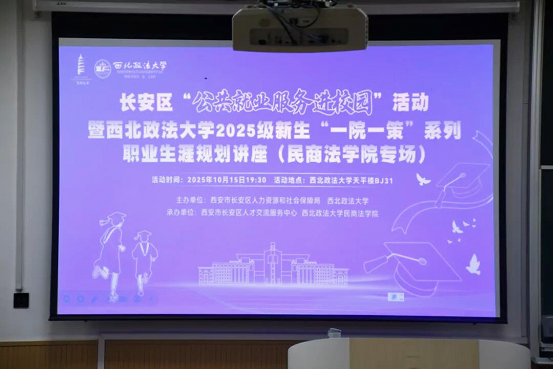 为帮助同学们明确职业方向、科学规划大学生涯,10月15日晚,蓝鲸体育直播 在天平楼BJ31开展2025级新生“一院一策”职业生涯规划讲座。本次活动由西安市长安区人才交流服务中心余洁老师主讲,2025级本科生辅导员张智超老师主持,2025级全体本科生参加。
