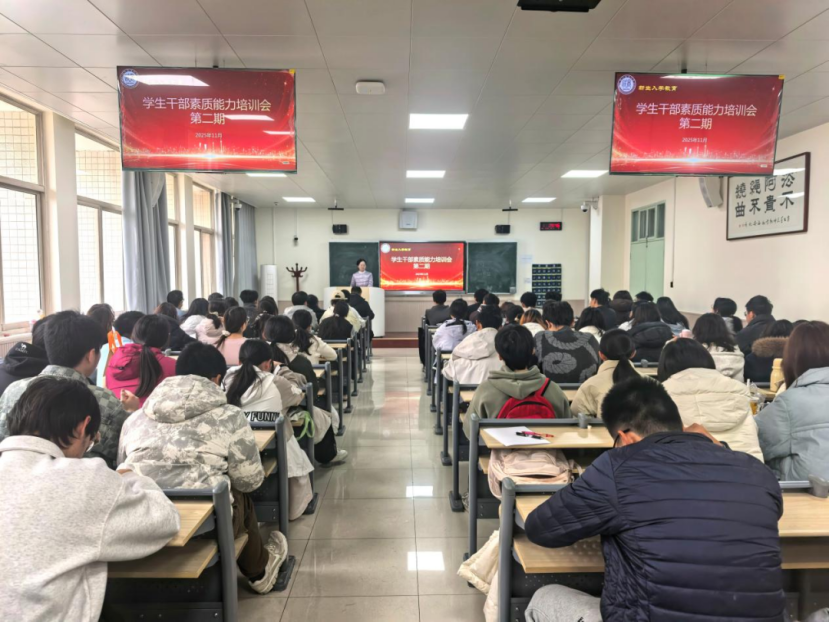 为进一步提升学生干部的实务能力与综合素养,11月26日,蓝鲸体育直播 2025级本科生学生干部素质能力培训会第二期在致知楼301教室召开。2025级辅导员丁艳艳主讲,2025级辅导员张智超主持,全体学生干部参与本次培训。