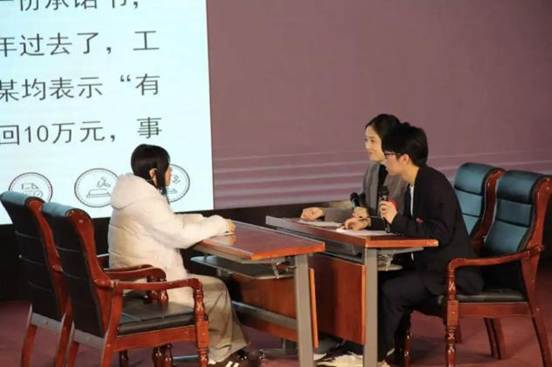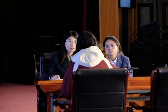 第三环节考查选手对法学专业知识的应用能力、语言组织表达能力及临场应变能力等。面对复杂案例,选手快速梳理法律关系,组织论证,场上可见沉着冷静的条分缕析,亦有在当事人追问下机智敏捷的回应,彰显未来法律人的实践潜力。