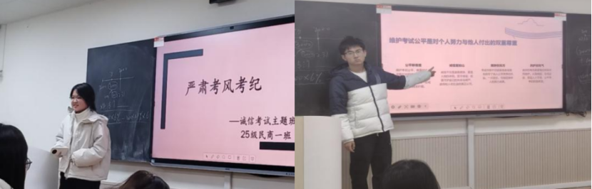 临近期末考试,各班统一行动,集中开展“严肃考风考纪”主题班会。各班按要求均组织全体同学学习《学生手册》中关于考试纪律的具体规定,深入剖析违纪作弊典型案例,明确舞弊行为将被记入诚信档案并影响评优评先等严重后果。班会普遍设置交流发言与诚信承诺书签署环节,同学们郑重承诺“以真实成绩检验学习成果”。此举不仅强化了规则意识,更为即将到来的期末考试营造了公平、公正、风清气正的应考环境。