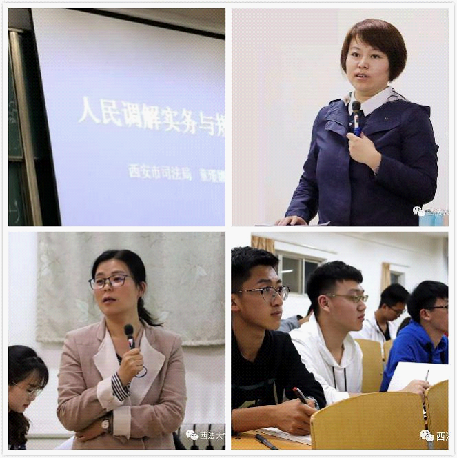 2018年4月24日晚,非诉讼纠纷解决机制(ADR)理论与实务课程系列实践教学活动——“人民调解实务与规范”主题讲座于西北政法大学长安校区AJ24教室举行。此次讲座的主讲人为西安市司法局基层处童璟娜主任。