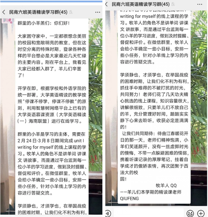延迟开学是打嬴疫情防控战的重要举措,我校利用“互联网+教育“模式实现教学工作确保“不延教、不停学”,最大限度降低疫情对教学进度和学习效果的影响。对于这样的教学方式,老师们有话对同学们说。