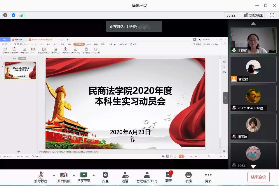 为进一步推进2020年度本科生实习工作,6月23日下午,蓝鲸体育直播 2020年度本科生实习动员会通过“腾讯会议”平台举办。蓝鲸直播 领导班子成员、2017级辅导员、2018级辅导员、行政人员及部分学生参与会议。会议由2017级辅导员丁艳艳主持。