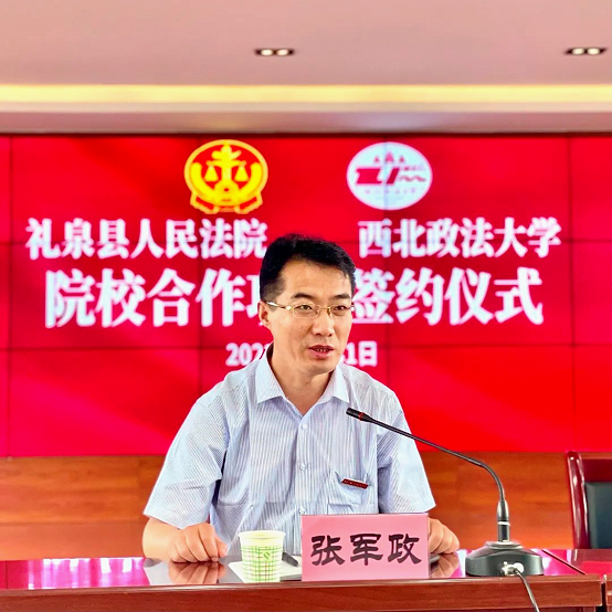 张军政副校长指出高校学生有深入实务部门学习的迫切渴望;高校教师有将论文写在祖国大地上的深切情怀;法学实务部门有深化理论学习的强烈需要,所以本次合作具有优势互补、互相促进的重要意义,表示学校将加强项目推进和责任落实,实现资源共享,携手打造院校合作共建的典范。