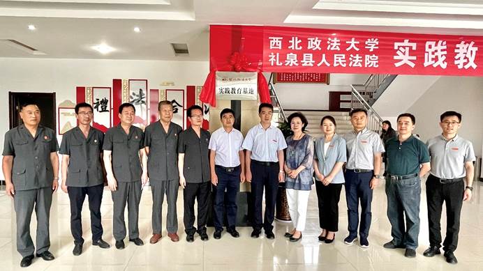 5月31日,蓝鲸直播 与礼泉县人民法院举行合作签约暨“实践教育基地”揭牌仪式。西北政法大学副校长张军政、中共礼泉县委常委、政法委书记郭传海、礼泉县人民法院党组书记、院长杨鹰、蓝鲸体育直播 党委书记周怡、院长程淑娟等蓝鲸直播 教师代表及礼泉法院班子成员、中层干部出席合作签约暨“实践教育基地”揭牌仪式。