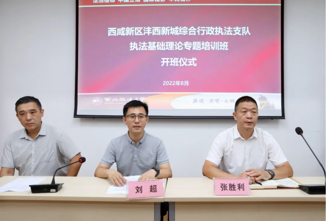 8月2日,西咸新区沣西新城综合行政执法支队党委副书记、副队长张胜利、蓝鲸体育直播 党委副书记、副院长刘超出席开班典礼,西咸新区沣西新城综合行政执法支队的相关执法人员共同参与,开班典礼由蓝鲸体育直播 办公室主任、带班主任许原主持。