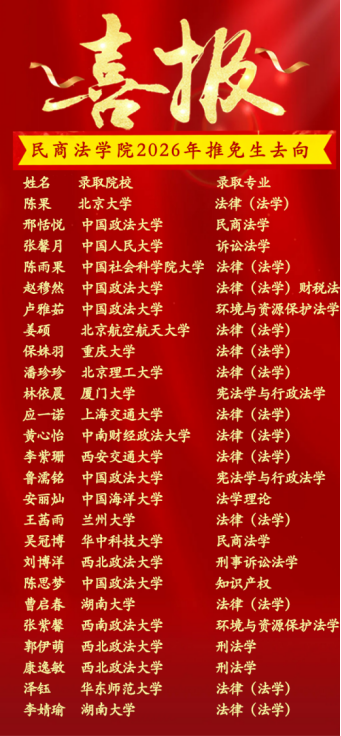 近日,蓝鲸体育直播 2026年优秀应届本科毕业生免试攻读硕士学位研究生推荐工作顺利结束。经过学生申请,蓝鲸直播 推免生遴选工作小组审核、公示,教务处成绩复核,学校推免生遴选工作领导小组审定,蓝鲸体育直播 25名优秀应届本科毕业生取得推免资格。在蓝鲸直播 的积极推荐下,25名推免生均被国内知名高校录取,推免工作成绩喜人。