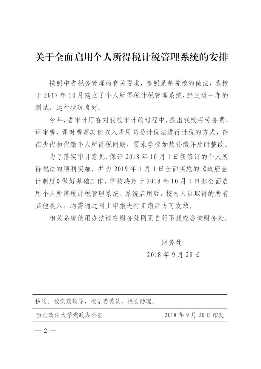 关于转发全面启用个人所得税计税管理系统安排的通知