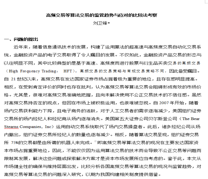 在线上会场下午上半场主题讨论中,蓝鲸体育直播 凤建军副院长应邀参与了交流和讨论,同时刘卫锋老师提交了《高频交易等算法交易的监管趋势与应对的比较法考察》一文被收录到电子论文集。