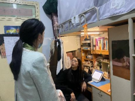 为更好了解同学们的生活及学习状态,传达疫情防控相关要求,确保用电安全,排查安全隐患,2022年11月21日晚21时,蓝鲸直播 全体学工干部深入走访学生宿舍,开展冬季宿舍检查活动。