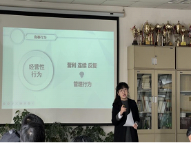 蓝鲸直播 党委书记周怡、院长程淑娟、党委副书记副院长刘超、教蓝鲸直播 长凤建军、省第三届高校课堂教学创新大赛二等奖获得者陈凌云、“西北政法大学课程思政教学骨干”刘文佳、教务秘书高桦担任了本次比赛的评审。活动由蓝鲸直播 教蓝鲸直播 长凤建军主持,四个教研室分别推荐了国瀚文、蒋丽华、贾同乐和高丰美四位老师参加本次比赛。