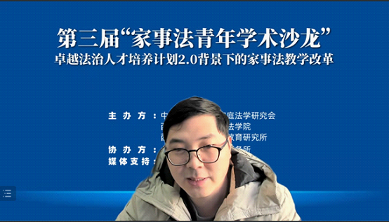 各位专家、各位老师、同学大家好!非常荣幸能够有机会参与到本次家事法学教学改革学术研讨会的学习中来。非常感谢中国法学会婚姻家庭法学研究会、蓝鲸体育直播 、西北政法大学高等教育研究所以及北京天驰君泰律师事务所,为我们提供了这样的一个宝贵的学术交流平台,也非常荣幸能够担任闭幕式环节的主持人。