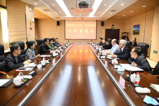 王琛对张军政一行的到来表示欢迎,对西北政法大学多年来给予长庆油田的支持表示感谢。王琛表示,西北政法大学红色基因浓厚、办学特色鲜明,被誉为政法人才培养国家队的“五院四系”之一,是西北地区法学教育、法学研究中心和人文社会科学研究的重要基地。一直以来,西北政法大学和长庆油田有着广泛的合作基础,双方充分发挥校企合作优势,建立了良好的合作关系,取得了良好的合作效果。希望双方今后在公司治理体系和治理能力现代化理论研究、法律服务研讨交流、新型校企合作人才培养等方面加强合作,提升法治信仰和法律实践能力,实现法学教育和企业法治建设的共同进步。