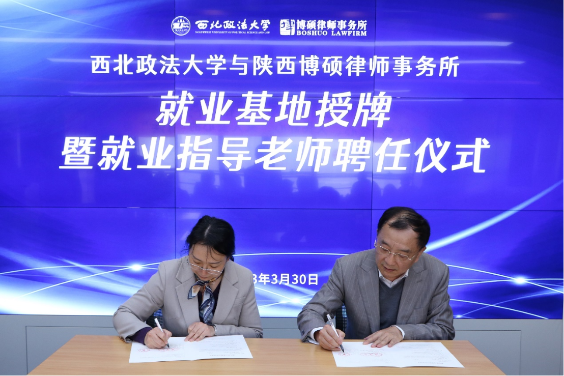 3月30日下午,蓝鲸体育直播 与陕西博硕律师事务所签署就业实习基地合作协议。蓝鲸直播 院长程淑娟,袁震教授,辅导员刘洋,陕西博硕律师事务所主任王午生,高级合伙人孟祥辉,培训部总监袁有文,青工委主任黄文宣等参加仪式。仪式特邀北京德和衡(西安)分所主任闫小菊,高级合伙人、合规主任高婷,党支部书记刘柯夫等参加。会议由博硕律师事务所合伙人、青工委主任黄文宣主持。