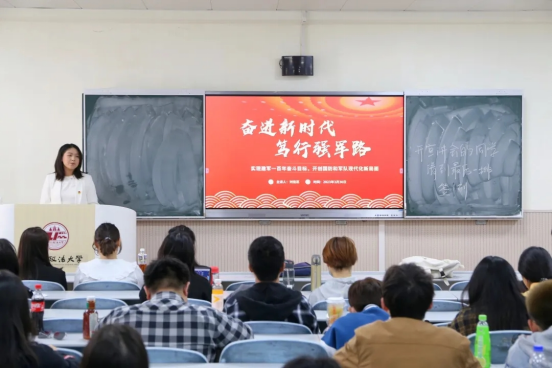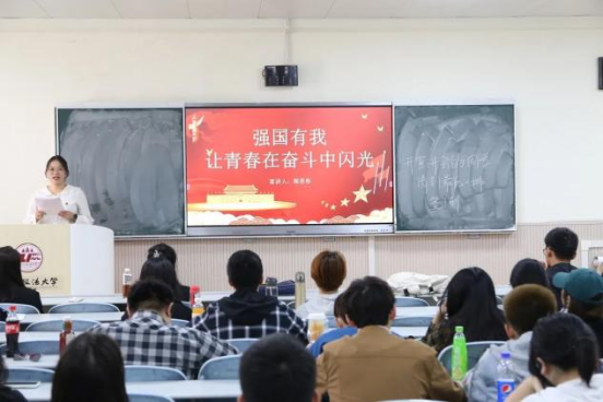 刑事法蓝鲸直播 宣讲人郜若彤以“强国有我,让青春在奋斗中闪光”为题展开宣讲,分享了在国家发展建设进程中涌现出的先进青年事迹,倡议西法大学子在中国特色社会主义新时代应将个人发展与民族复兴、国家富强相结合,不忘初心,奋楫扬帆,为实现中华民族伟大复兴奉献青春力量。