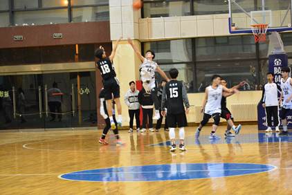 下半场比赛,赛事更加胶着。18号球员马高旭和24号球员唐盛杰默契配合,多次顺利上篮鼓舞了我方士气,15号球员赵锦烨漂亮的传球和9号球员那尔斯精准的投篮赢得了在场观众的阵阵喝彩。之后我方球员调整策略,平衡了进攻和防守,18号球员马高旭抢下篮板为我方争取球权,将领先优势扩大。21时29分随着哨声响起,我方以65:53取得胜利。