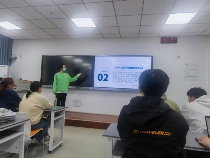 了解真实案例,体会现实价值。团支部书记通过生活中一系列真实案例,展示了国家安全的重要性,为同学们敲响了国家安全问题的警钟。活动中,同学们深刻认识到国家安全是安邦定国的重要基石,维护国家安全是全国各族人民根本利益所在。同时,同学们也要积极树立国家安全意识,积极向周围的人做国家安全知识的宣传,培养关心和维护国家安全的思想。
