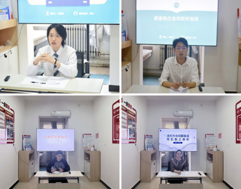 九组同学依次进行课题展示。项目答辩人围绕公平分担损失规则、隐私合规等问题,从选题背景、研究思路和研究方法、实证考察、风险评估等方面进行阐释,具体讲解了本组科研项目的主要内容与实证分析。各组答辩人在进行答辩汇报时思路清晰,逻辑层次分明,对于本组项目的展示论点简明,论证合理,得到在场老师一致认可。