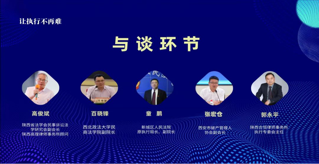 本次论坛特别设置了开放的“执行疑难问题圆桌会议”,由陕西合恒律师事务所李志山主任主持,陕西高理律师事务所孙利平、北京速执律师事务所付晓雷、陕西云善律师事务所吴科、海普睿诚律师事务所申从军、北京市康达(西安)律师事务所郭杨、陕西合恒律师事务所夏祥钢等人分别围绕执行监督展开,各位嘉宾结合自己的经验和实务案例分享了“民事执行程序中的突出问题和执行监督案件办理实践中的难点痛点”、“执行监督工作的现状”、“执行监督中存在的问题和对策”、“终本执行案件监督的难题”、“如何更好的对执行监督这一监督程序保障”、“切实提高执行难”等问题的观点,现场交锋激烈,火花四射,掌声连起。