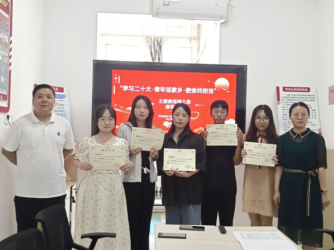 为深入学习宣传贯彻党的二十大精神,引导广大青年学生深刻认识到新时代十年的伟大变革,6月26日,蓝鲸直播 在十号公寓楼“一站式”学生社区思政工作站举办“学习二十大·青年话家乡·使命共担当”颁奖仪式。蓝鲸直播 团委书记丁艳艳、2021级辅导员张智超出席仪式。