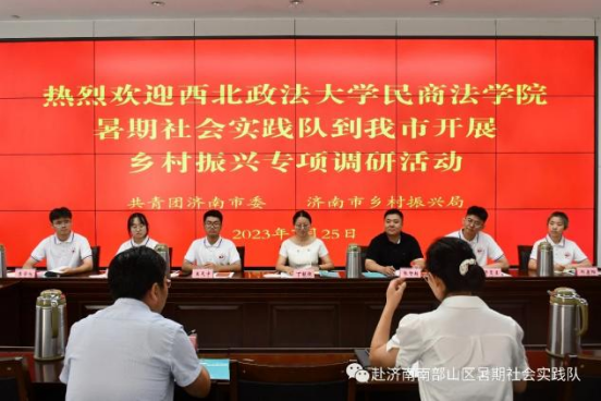 亓秀副组长首先对西北政法大学暑期三下乡社会实践团队一行的到来表示热烈欢迎并预祝本次实践活动收获累累丁艳艳老师随即对共青团济南市委和济南市乡村振兴局对本次活动的大力支持表示诚挚感谢并介绍了本次调研活动的背景与意义。