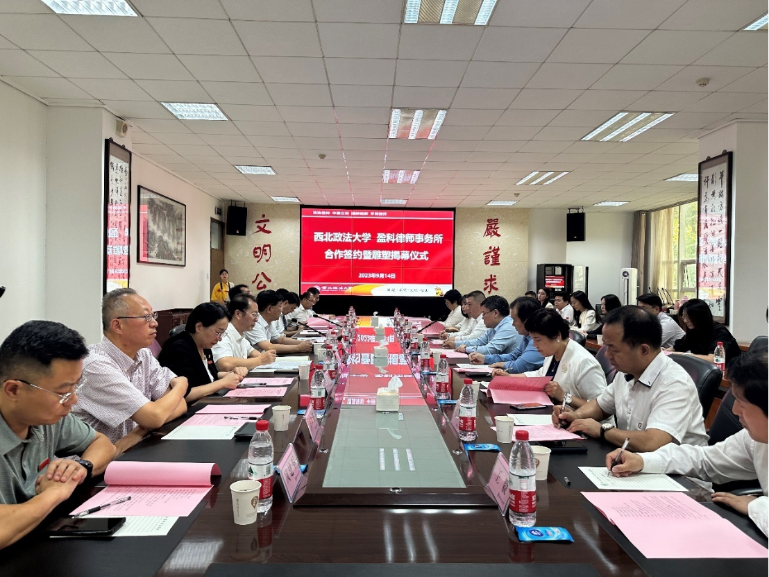 9月14日下午,我校与盈科律师事务所合作签约暨雕塑揭幕仪式在长安校区隆重举行。校长范九利,盈科律师事务所党委书记、主任、全球董事会主任梅向荣,中国区董事会主任、中国区执行主任李正等出席活动。副校长张军政主持签约仪式。