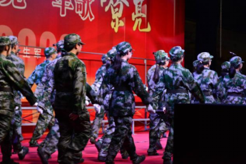 舞台前,红色横幅被摇动成波浪的形状,好似燎原的革命浪潮,淘旧换新,带来一番新气象。新时代的青年牢记使命,担当起民族复兴大任,就如同学们在校歌中所唱——“忠诚团结,紧张活泼……献身于新社会的建设,铸造成国家的栋梁。”豪迈雄浑的歌声响彻全场,唱出了军人之魂,唱出了青年热血,也唱出了对祖国的热爱,赢得了在场观众的阵阵掌声与喝彩,现场激情飞扬。