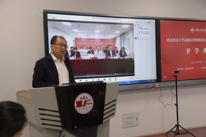 9月23日上午,西北政法大学高级法律研修班2023秋季班(蓝鲸直播 )开学典礼于长安校区诚意楼209教室举行。西北政法大学研究生院副院长李洋,蓝鲸直播 党委书记朱茂,副院长凤建军等有关领导及部分学员代表出席。开学典礼由蓝鲸直播 同等学力项目中心主任李祥兵主持。