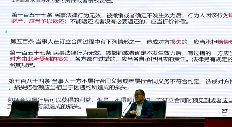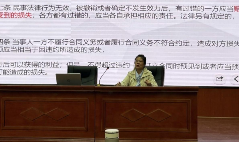 肖军律师从法律适用的底层思维和法律适用的操作核心两个大方面阐述了请求权基础的内在逻辑和法理基础;介绍了法庭报告技术的六步分析法:审查起诉要件、审查原告主张一贯性、审查被告主张重要性、确定争点、证据调查、事实认定以及作出裁判;并通过具体的案例对请求权基础分析法进行了分析,介绍了法条检索适用的规则方法,强调了熟悉法条的重要性,通过穿插案例的讲解方式,让学生在分析案情中深刻理解并学会应用这些方法。最后,肖军律师和学生一起对本次讲座进行总结回顾并对我校学生寄予期许。