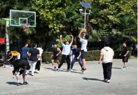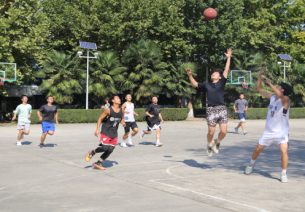 温暖的阳光更加点燃斗志,各队球员积极进行赛前热身,互相加油打气。随着一声哨响,比赛正式开始,球员们迅速进入状态。大一新生动作迅猛、身姿矫健,弹跳扣篮尽显球技;大二组严守硬对、配合完美,控球传导得心应手,频频打出精彩联动。拦截、防守、进攻、投篮,篮球在半空划出道道弧线,青春在跳跃里绽放光彩。
