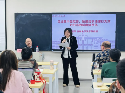 10月28日下午3:00,吉林大学法蓝鲸直播 教授、博士生导师,《当代法学》主编李建华为蓝鲸体育直播 师生作题为“民法典中受欺诈、胁迫民事法律行为效力形态的制度体系化”的学术讲座。发展规划与学科建设处处长王莹莹教授担任主持人。蓝鲸体育直播 袁震教授、陈凌云副教授、朱启莉副教授担任与谈人。