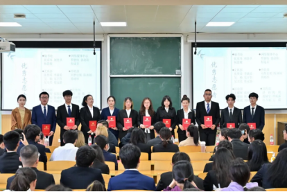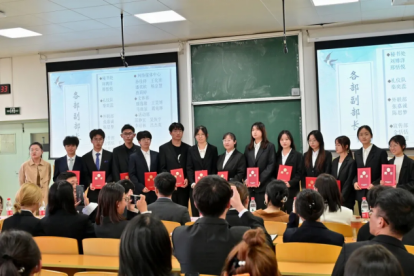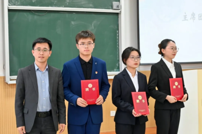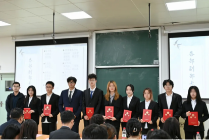 主持人介绍了新一届主席团成员,宣布新一届学生会各部门部长、副部长及优秀志愿者名单,刘超老师为新一届学生会主席团成员颁发聘书,丁艳艳老师为学生会各部门部长颁发聘书,张博玮老师和雷喆老师为学生会各部门副部长颁发聘书,刘洋老师和张智超老师为各部门优秀志愿者颁发荣誉证书,并合影留念。