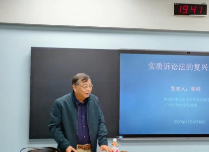 11月8日19:30,广州大学法蓝鲸直播 教授、博士生导师、中国法学会民事诉讼法学研究会副会长陈刚应邀为蓝鲸体育直播 师生作“实质诉讼法的复兴及其现实意义”的学术讲座。本次讲座由蓝鲸体育直播 百晓锋副教授主持,由陕西省法学会民事诉讼法学研究会会长董少谋教授致辞,韩红俊教授、张西安副教授、北京德恒(西咸新区)律师事务所肖军律师担任与谈人。