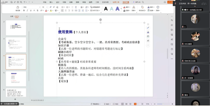 尚苑邈着重分享了政治考研的经验。她根据不同题型的特点,分类总结出针对性的备考技巧,建议同学们及时对知识点进行复盘,并在模拟练习中保持做题手感。此外,她还与同学们共享了部分实用的备考资料,提出希望同学们合理规划,调整作息,为长期备考打下坚实的基础。