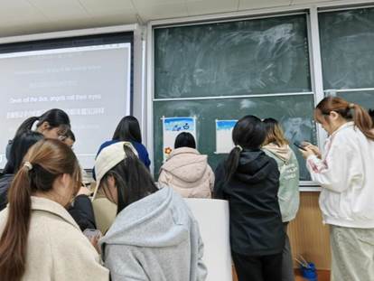 8班依照此前心委在班群中公布的游戏,根据各自的兴趣选择娱乐项目进行了“闹钟炸弹”“终极密码”“海龟汤”等小游戏,现场气氛热烈,心理委员给获胜者颁发了书签、钥匙扣等小礼品,游戏结束后参与同学一起拍了温馨的大合照。
